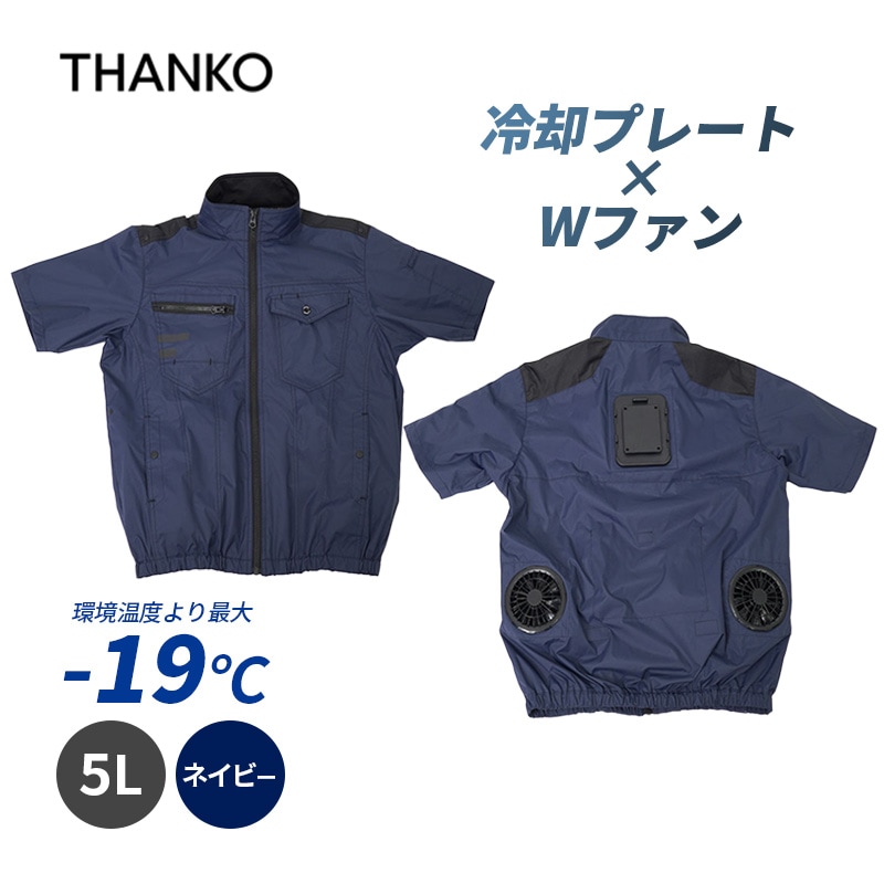 [TKWE25SNV5L] 圧倒的に冷える 冷蔵服4 半袖 ネイビー 5L バッテリー別売 空調冷房服 暑さ対策 ペルチェ 冷却 ...