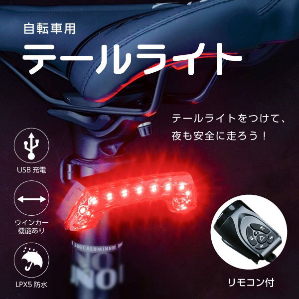 ライト テールライト 自転車 点灯 ウインカー レーザー車幅灯 ワイヤレス リモコン USB充電 防水 マウンテンバイク ロードバ...
