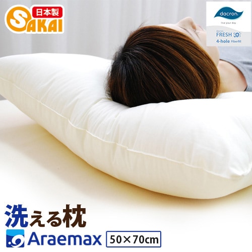 ダクロン(R)FRESH4穴中わた使用 洗える枕50×70cm 【まくらアレルギー対策洗える枕ピロー日本製丸洗い速乾性防ダニ寝具...