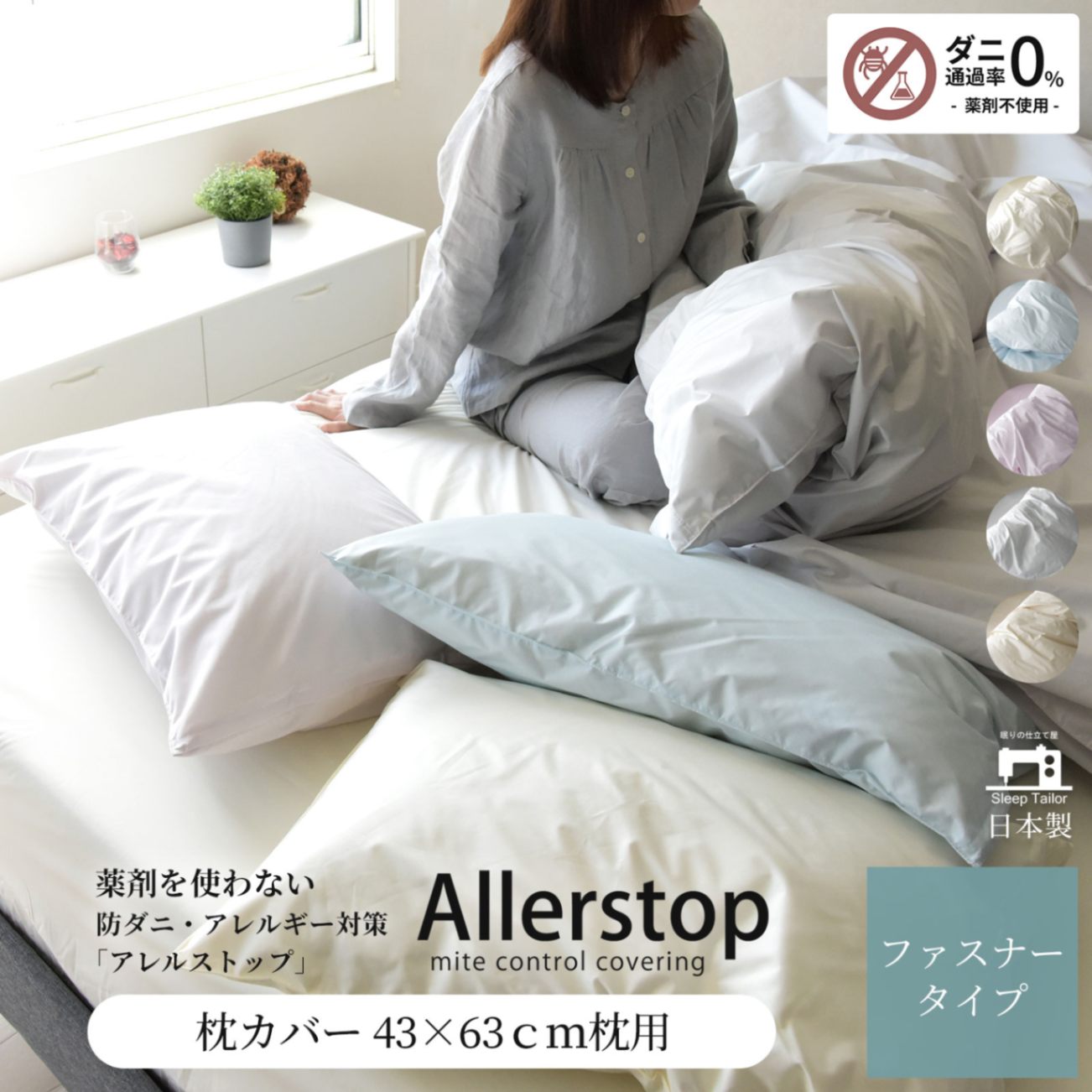 防ダニ 枕カバー 43×63cm枕用 アレルストップ 日本製 アトピー協会推薦品