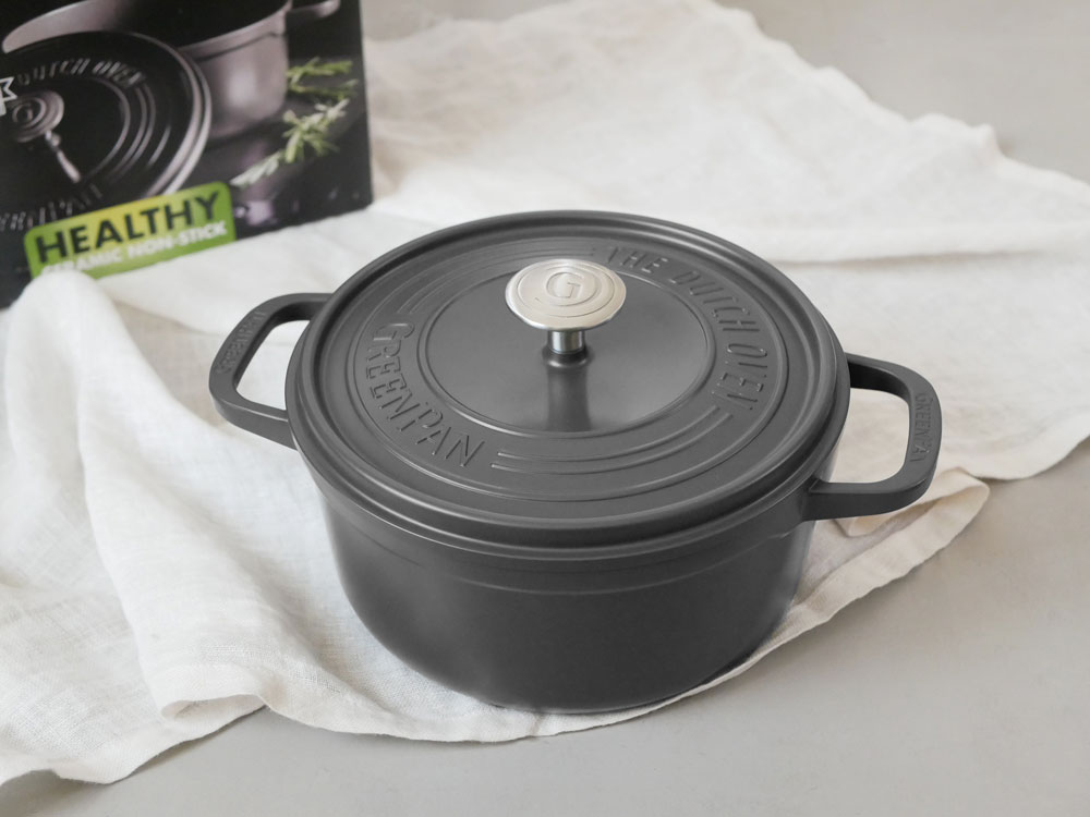 【GREENPAN/グリーンパン】フェザーウェイト ココット ラウンド 22cm ポットホルダー2個付 グレー