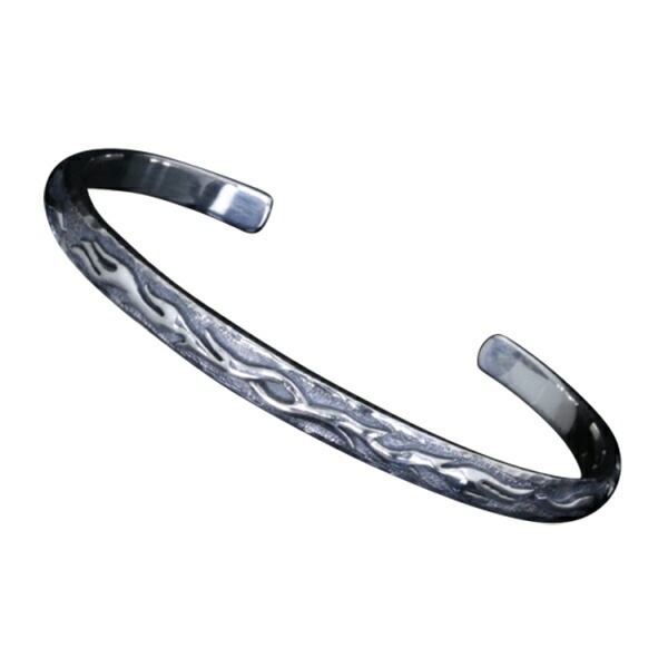 龍頭 平打ち火焔 バングル 燻し仕上げ メンズ シルバー シルバーバングル メンズバングル シルバー950 男性 彼氏 伝統技法 ...