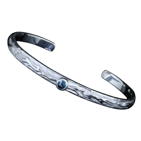 龍頭 平打ち火焔 バングル 石付 白仕上げ メンズ シルバー シルバーバングル メンズバングル シルバー950 男性 彼氏 伝統技...