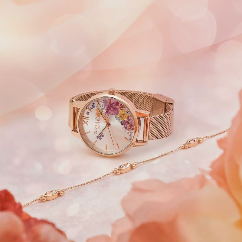 OLIVIA BURTON|Signature〈数量限定〉シグネチャー イラストレイテッド フローラル ローズゴールドメッシュ&ブ...