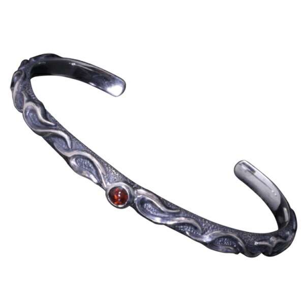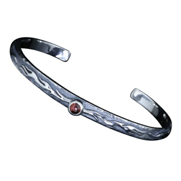 龍頭 平打ち火焔 バングル 石付 燻し仕上げ メンズ シルバー シルバーバングル メンズバングル シルバー950 男性 彼氏 伝統...