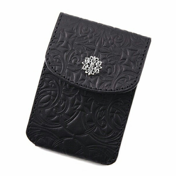 ショートウォレット/革財布 アラベスク エンボス ブラック サドルレザー