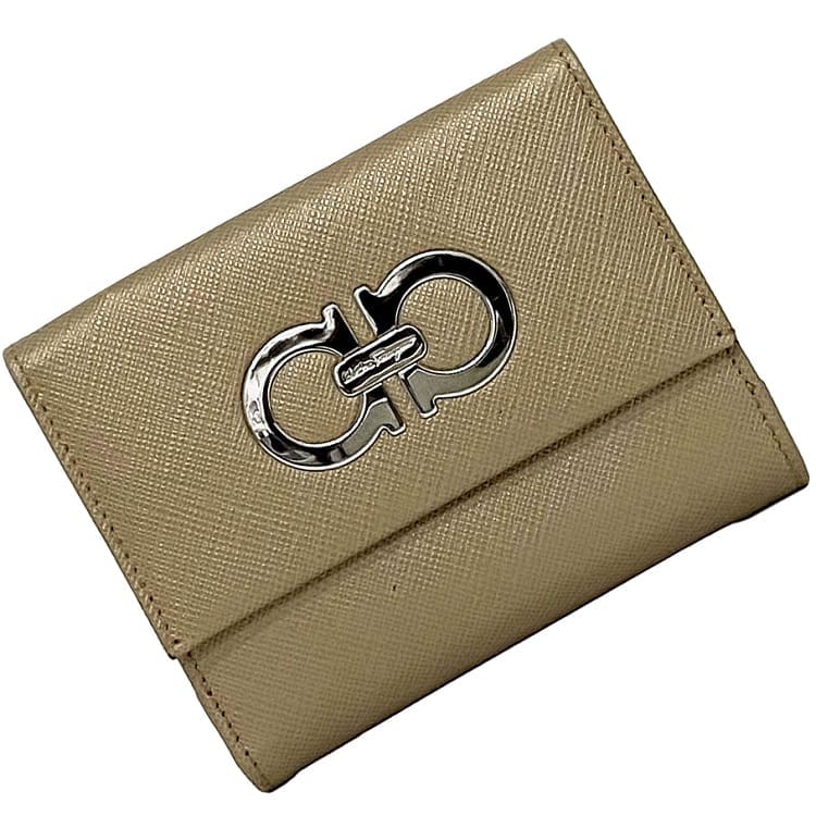 サルヴァトーレ フェラガモ 二つ折り 財布 ec-22484 ゴールド ガンチーニ 22 7122 美品 レザー 中古 Salva...