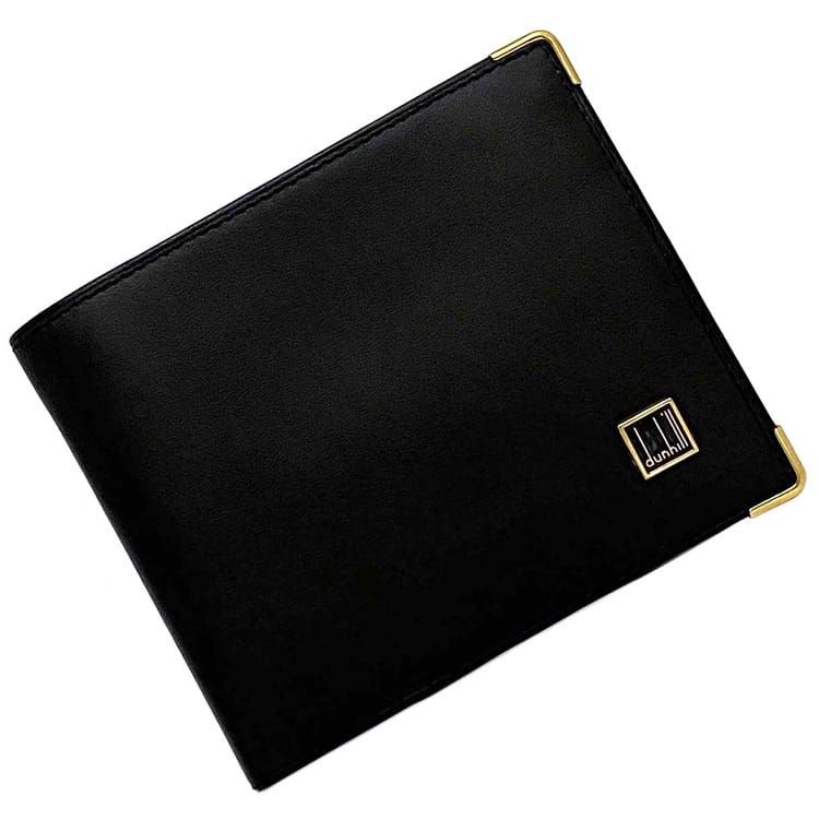 ダンヒル 二つ折り 財布 ブラック ゴールド 美品 折り財布 レザー 中古 dunhill ロゴ シンプル メンズ 定番 人気 男...
