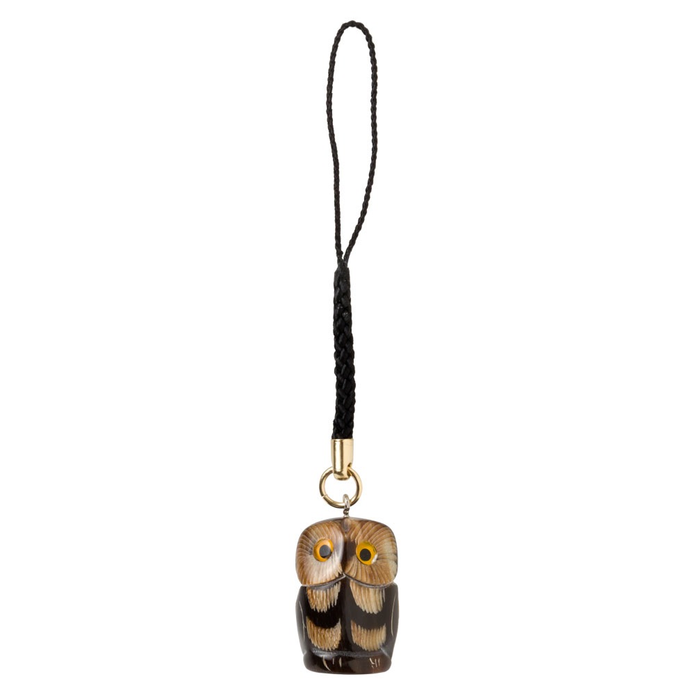 ふくろう根付・ストラップ 水牛の角製 (KS) Owl strap