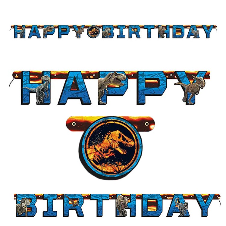 送料無料/ バースデー ガーランド ジュラシック ワールド パーティグッズ 恐竜 誕生日飾り付け 室内装飾 キャラクター