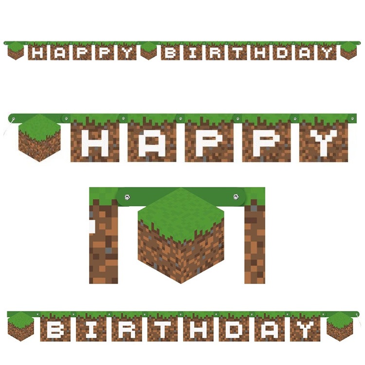 送料無料/ バースデー ガーランド バナー マインクラフト パーティグッズ 誕生日飾り付け 室内装飾 キャラクター