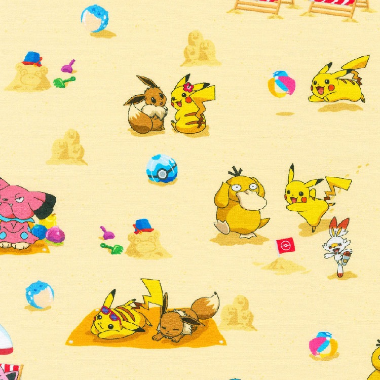 送料無料/ 10cm単位 続けてカット ポケモン ビーチ タン 生地 総柄 ピカチュー コットン プリント キャラクター 男の子 ...