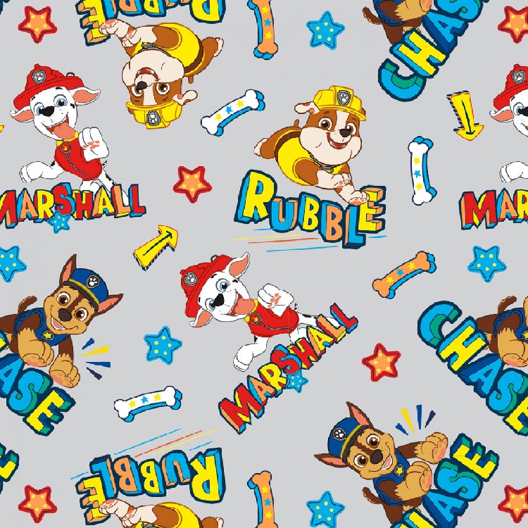 送料無料/ 10cm単位 続けてカット パウ・パトロール グレー 生地 総柄 パウパト コットン プリント キャラクター 男の子 ...