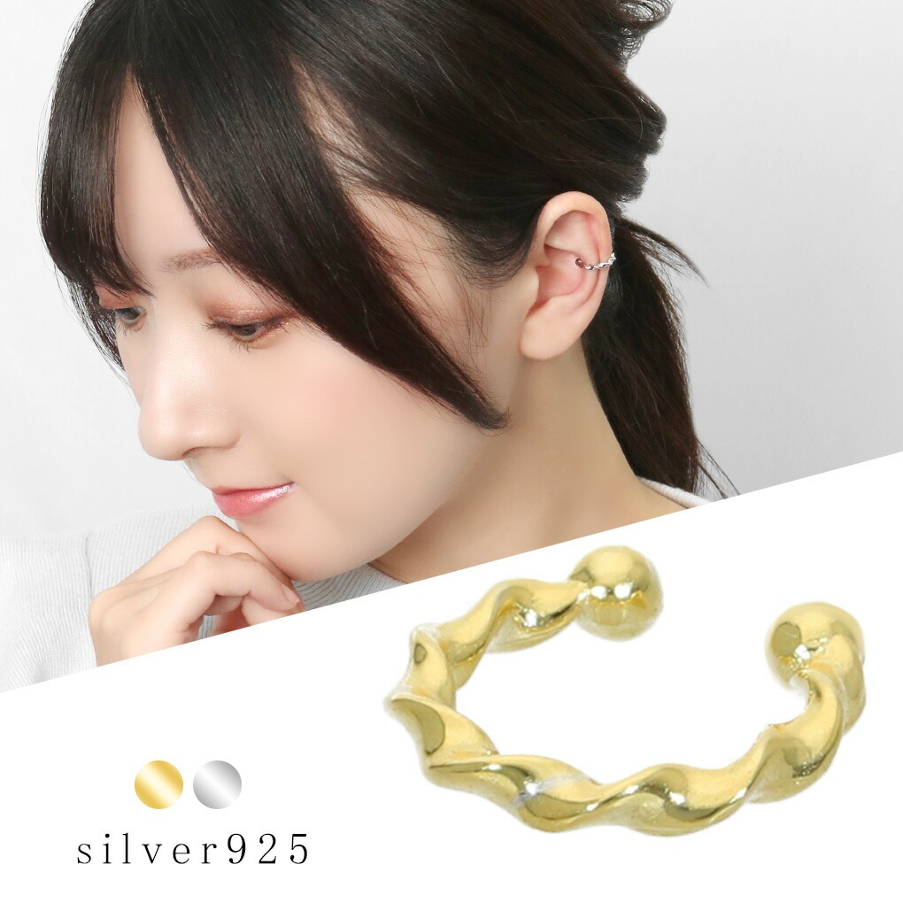 シンプル ウェーブ イヤーカフ 1P 片耳用 シルバー925 シルバー ゴールド さりげない 小さめ 華奢 捻じり 波 大人 上品...