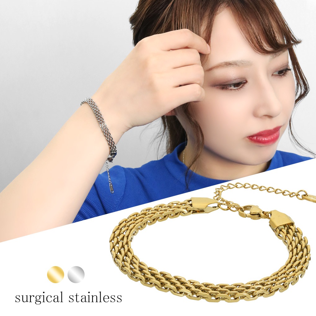 ステンレス チェーン ブレスレット サージカルステンレス 18金 K18 コーティング 金属アレルギーフリー ニッケルフリー シル...