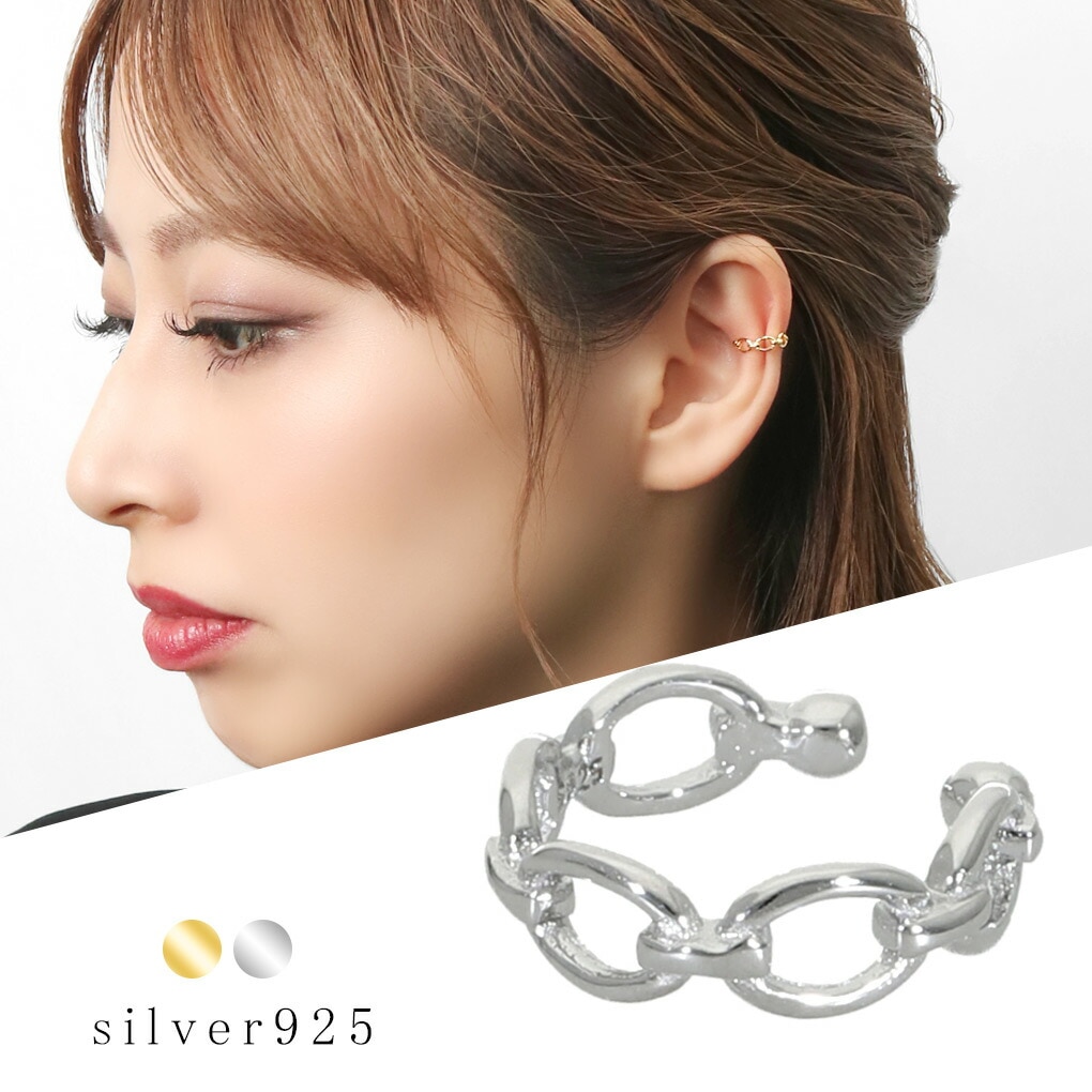 シンプル チェーン イヤーカフ 1P 片耳用 シルバー925 シルバー ゴールド さりげない 小さめ 華奢 透かし 鎖 大人 上品...