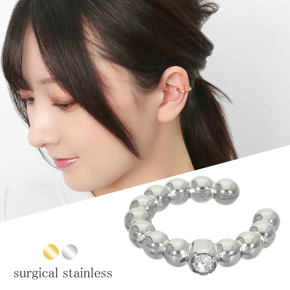 ステンレス ジルコニア イヤーカフ 1P 片耳用 サージカルステンレス 18金 K18 コーティング 金属アレルギーフリー ニッケ...