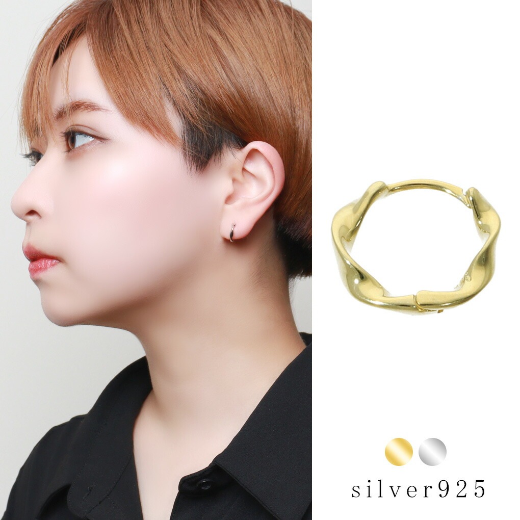 シンプル ウェーブ フープピアス 1P 片耳用 シルバー925 ピアス シルバー ゴールド さりげない 小さめ 華奢 捻じり 波 ...
