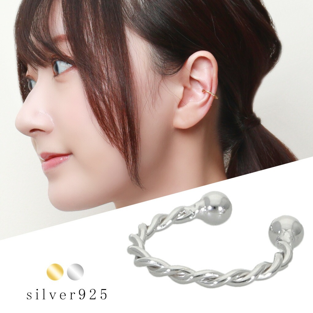 シンプル ロープ イヤーカフ 1P 片耳用 シルバー925 シルバー ゴールド さりげない 小さめ 華奢 捻じり 大人 上品 綺麗...