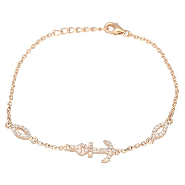 アンカー ジルコニア シルバー ブレスレット ピンクゴールド シルバー925 マリン 海 夏 錨 碇 イカリ かわいい シルバーア...