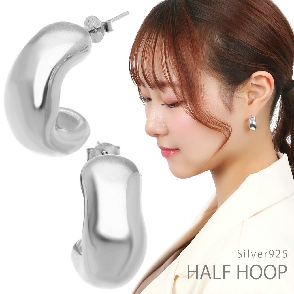 ボリューム ハーフフープ ピアス 2P 両耳用 シルバー レディースピアス 925 大きめ 存在感 ビーンズ 豆 上品 きれい 大...