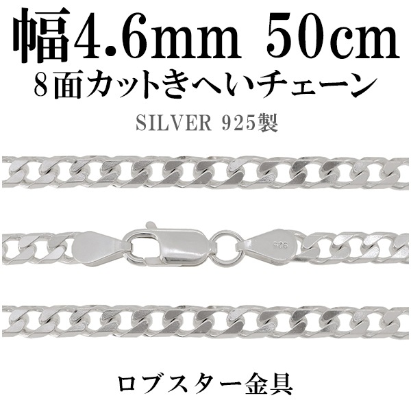 シルバーチェーン ネックレス チェーン 8面カット 喜平チェーン 幅約4.6mm 厚み1.8mm 50cm シルバー925 銀 き...