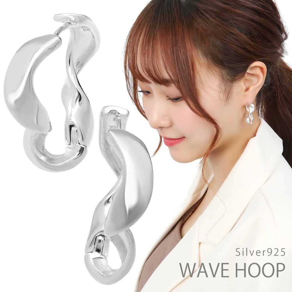 リボン フープ ボリューム ピアス 2P 両耳用 シルバー 925 レディースピアス 大きめ 存在感 ウェーブ 上品 きれい 大人...