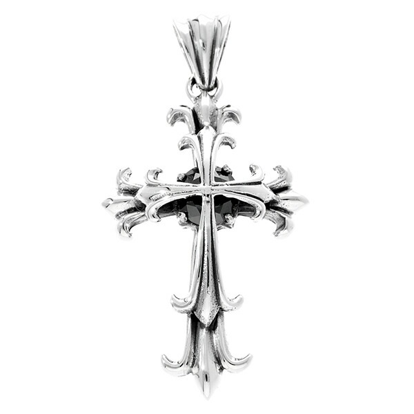 ブラックジルコニア クロス シルバー ペンダントトップ チェーンなし 大ぶり 大きめ 十字架 ペンダント ネックレス トップ ヘッ...