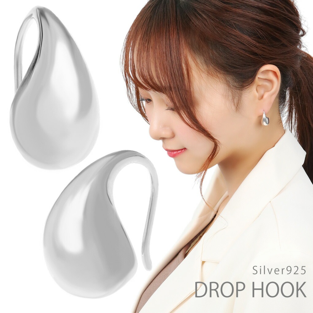 ドロップ フック ボリューム ピアス 2P 両耳用 シルバー 925 レディースピアス 大きめ 存在感 しずく 雫 涙 上品 きれ...