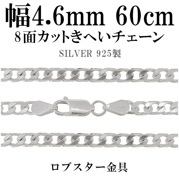 シルバーチェーン ネックレス チェーン 8面カット喜平チェーン 幅約4.6mm 厚み1.8mm 60cm シルバー925 銀 きへ...