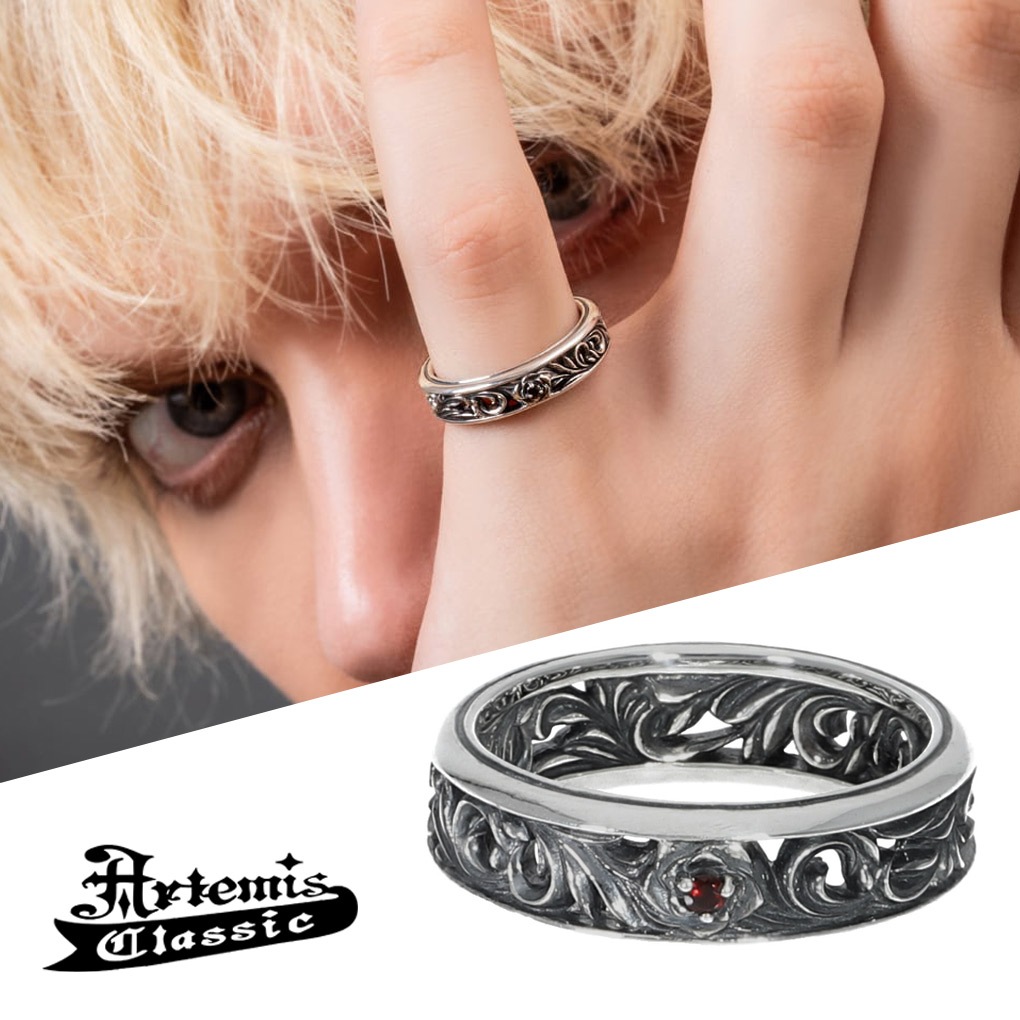 アルテミスクラシック 透かし アラベスク ローズ リング 指輪 10~20号 シルバー925 ガーネット 1月 誕生石 天然石 シ...