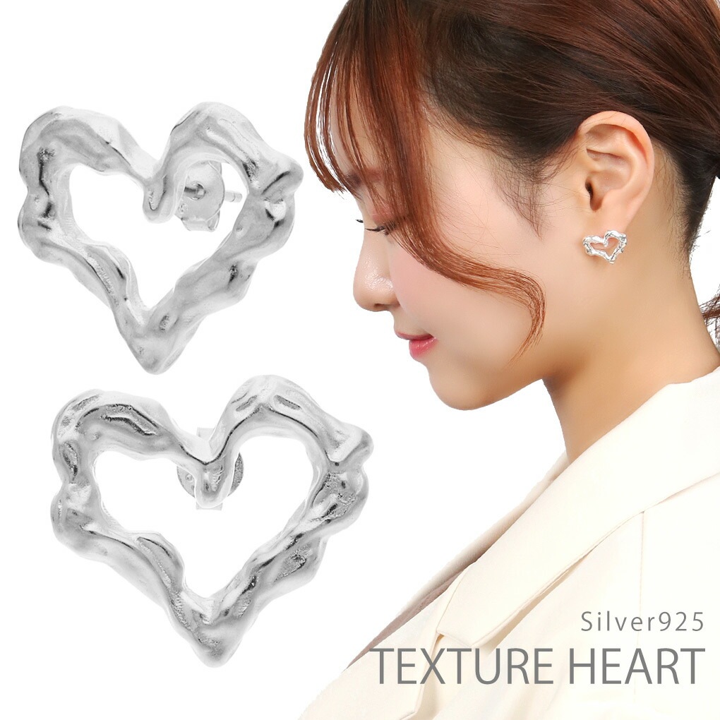オープンハート ボリューム ピアス 2P 両耳用 シルバー レディースピアス 925 大きめ 存在感 ハート クリーム テクスチャ...