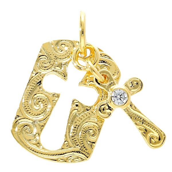 アラベスク クロス プレート シルバー ペンダントトップ チェーンなし ゴールドコーティング 唐草 スクロール 十字架 ペンダント...