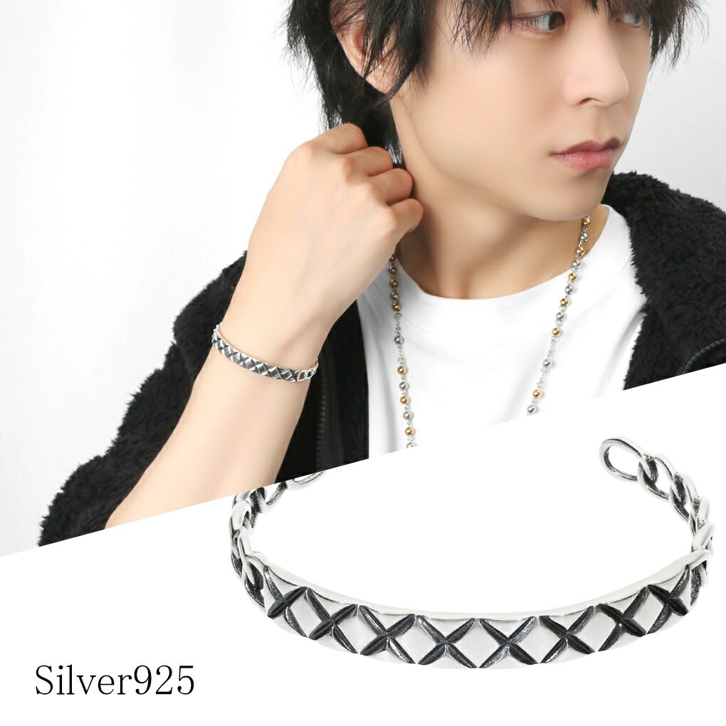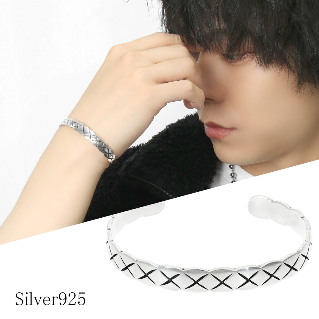 バングル ブレスレット 腕輪 シルバー925 銀 シルバー シンプル さりげない バツ バッテン 網目 キルティング 切れ目 かっ...
