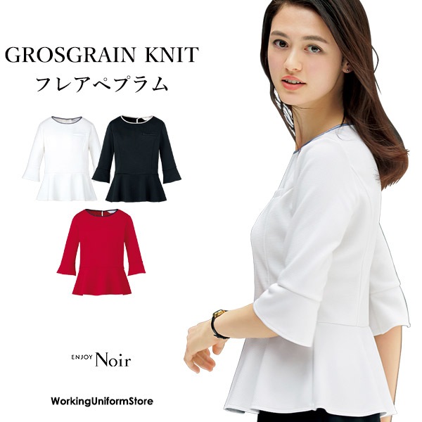 事務服 受付 七分袖プルオーバー EWT631 グログランニット エンジョイ