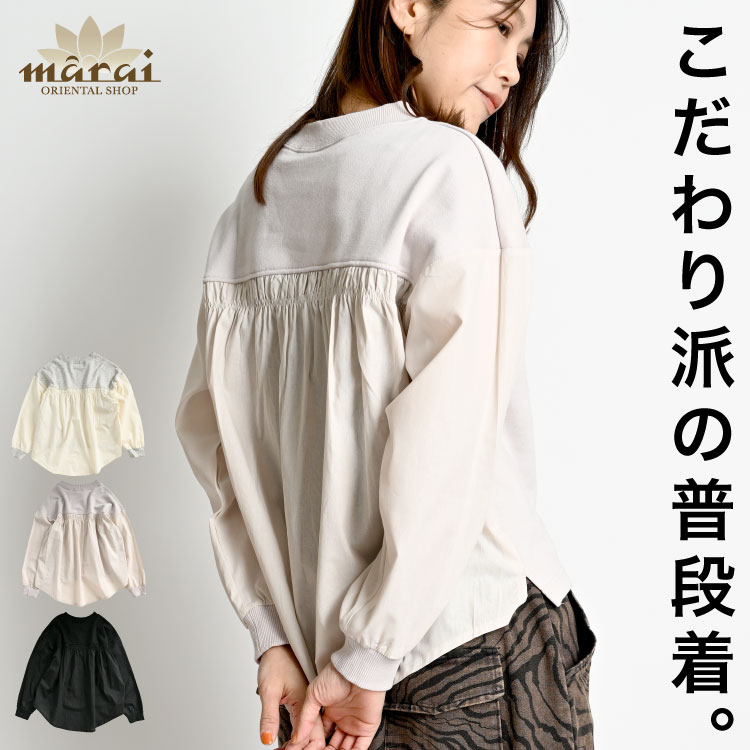 スウェット 長袖 レディース こだわり派の普段着。異素材ミックスプルオーバー プルオーバー トップス トレーナー シャツ バックギ...