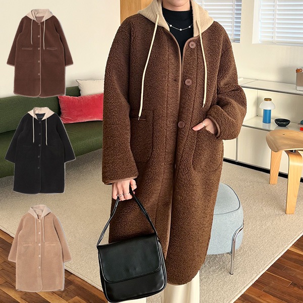 フード付きボアロングコート