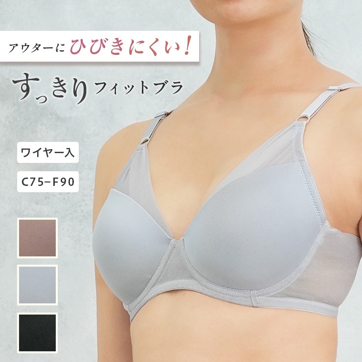 \アウターにひびきにくい/すっきりフィットブラ ワイヤー入り C75~F90 脇高 段差レス 背中すっきり 単品ブラ