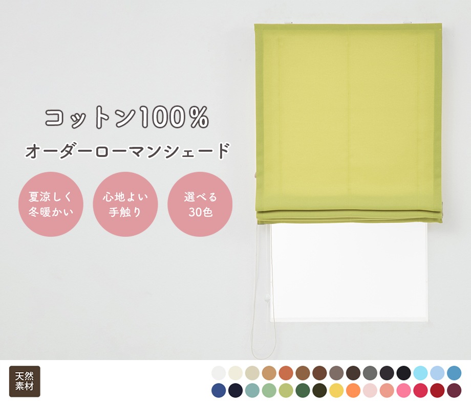 【幕体のみ】綿(コットン)100% 無地 さらっとした触り心地のオックス織り天然素材ローマンシェード グラスグリーン【買い替え用】