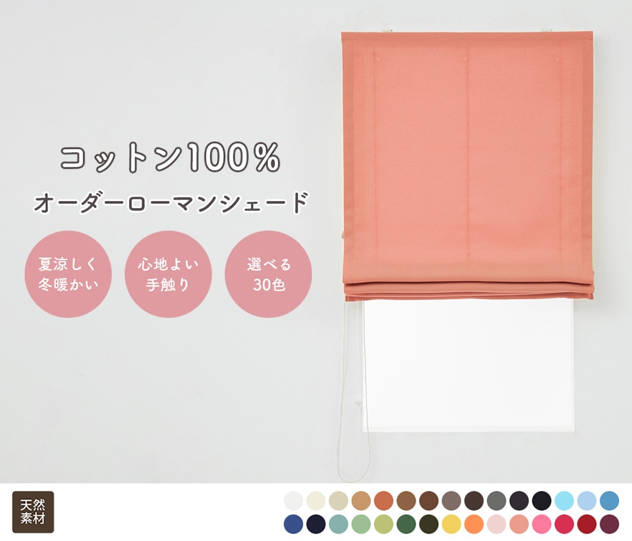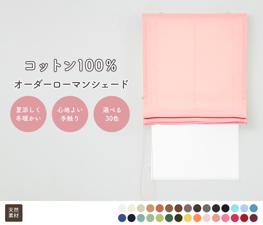 【幕体のみ】綿(コットン)100% 無地 さらっとした触り心地のオックス織り天然素材ローマンシェード ローズ【買い替え用】