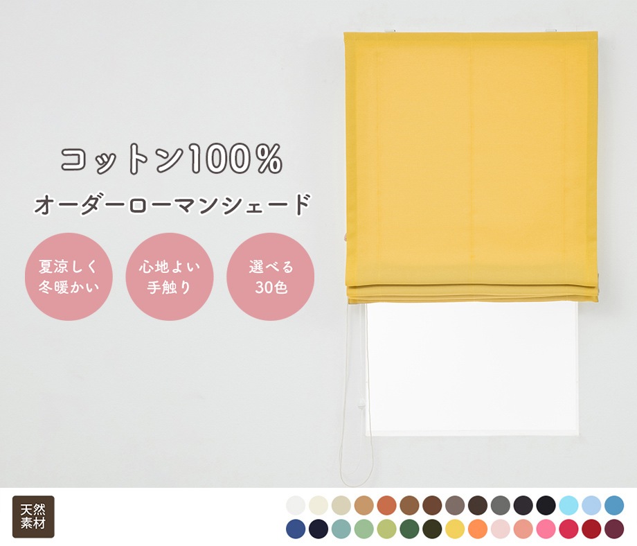 【幕体のみ】綿(コットン)100% 無地 さらっとした触り心地のオックス織り天然素材ローマンシェード イエロー【買い替え用】