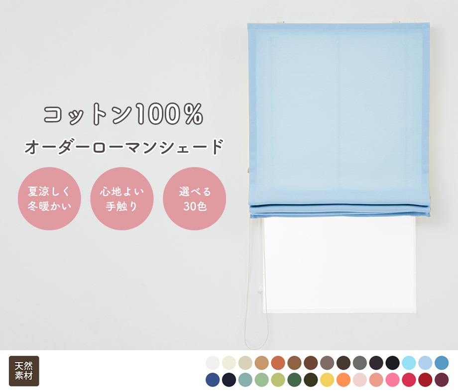 【幕体のみ】綿(コットン)100% 無地 さらっとした触り心地のオックス織り天然素材ローマンシェード アイスブルー【買い替え用】
