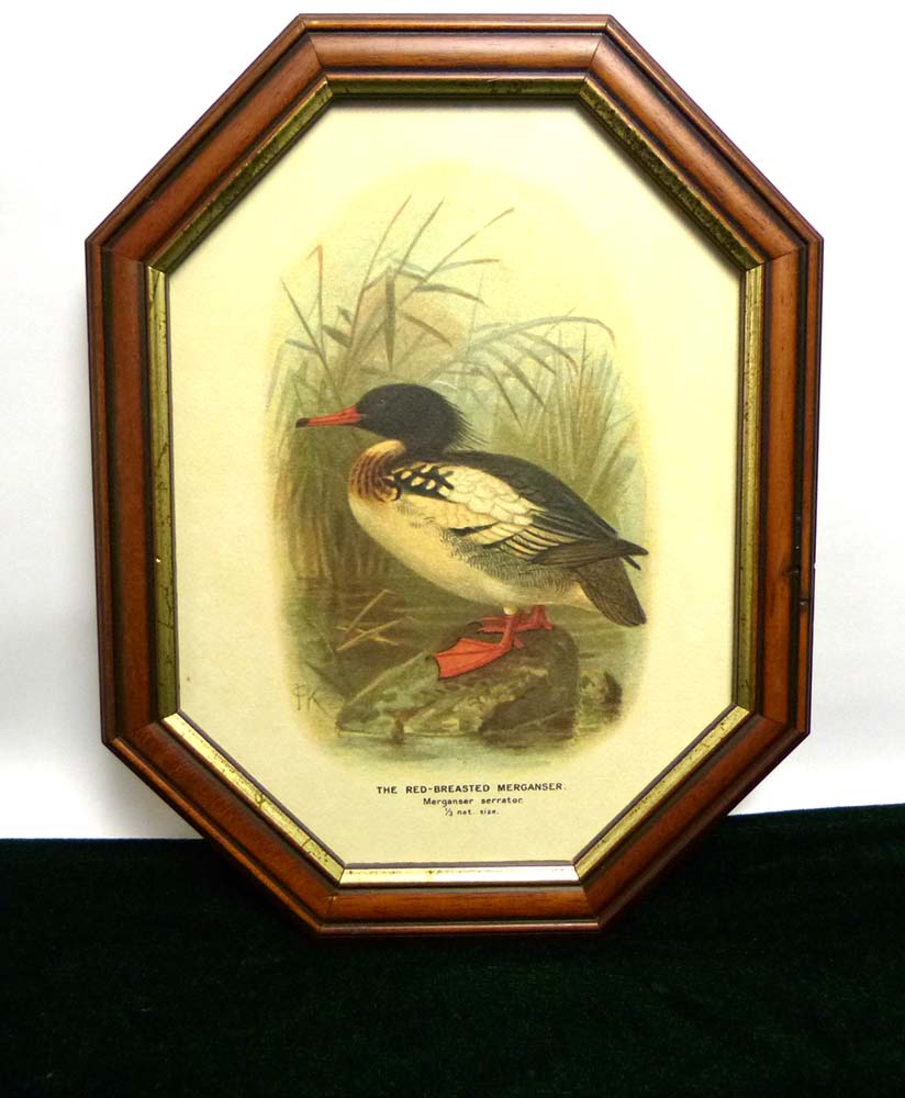 Red-breasted merganser ウミアイサ 8角形 木製フレーム /額縁【中古】