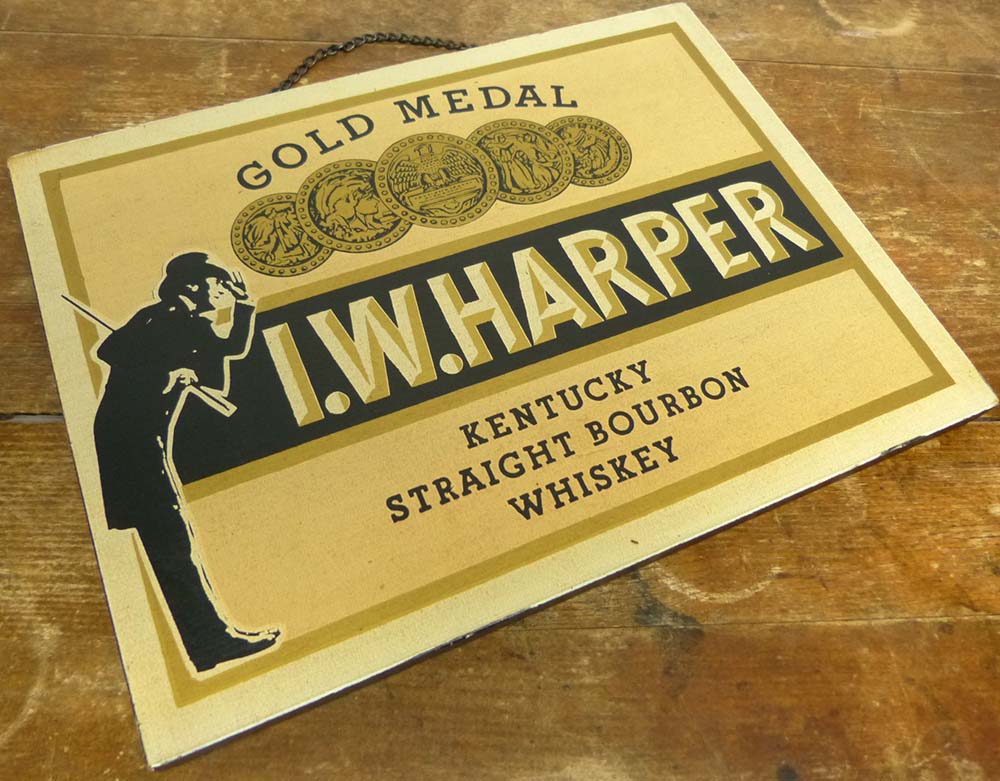 【希少】I.W.HARPER ハーパー ゴールドメダル GOLD MEDAL 木製 看板 【中古】