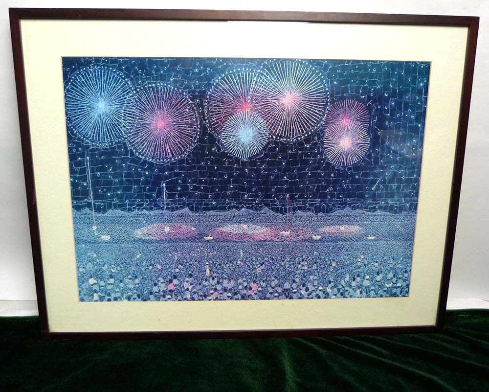 山下清「長岡の花火」ポスター 額装 【中古】