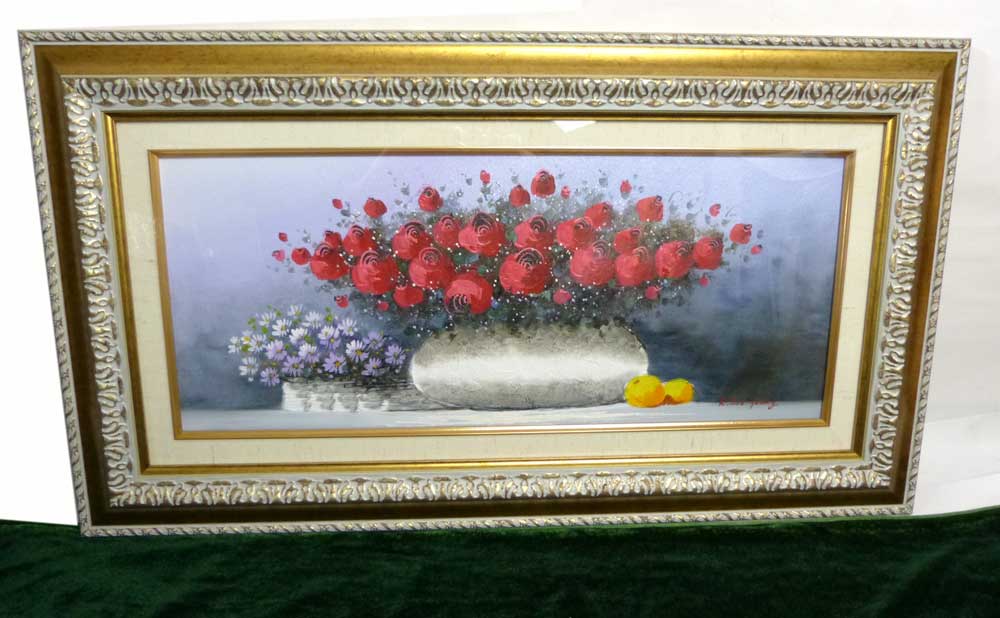 K.Soo Young 花と花瓶 金縁 / 額縁 木製フレーム 油絵(油彩額縁)【中古】