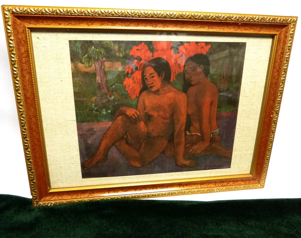 シルク・アート ポール・ゴーギャン 『彼女らの肉体の黄金』額装【中古】