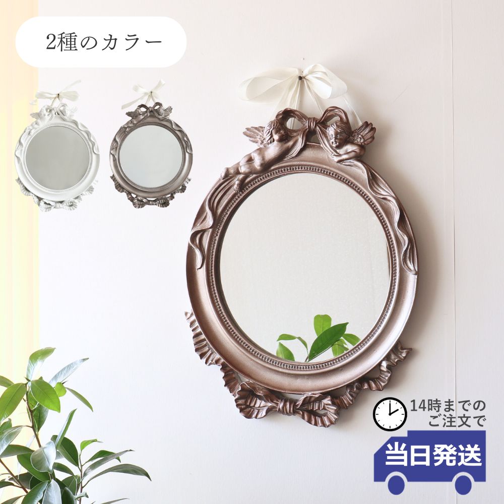 壁掛けミラー 鏡 エンジェルリボンフレーム 幅31cm×高さ39cm|おしゃれなインテリアの輸入雑貨イエ【公式通販】