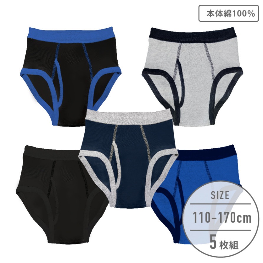 【男の子】ブリーフパンツ 5枚組 前開き/無地 110~170cm【本体:綿100%】