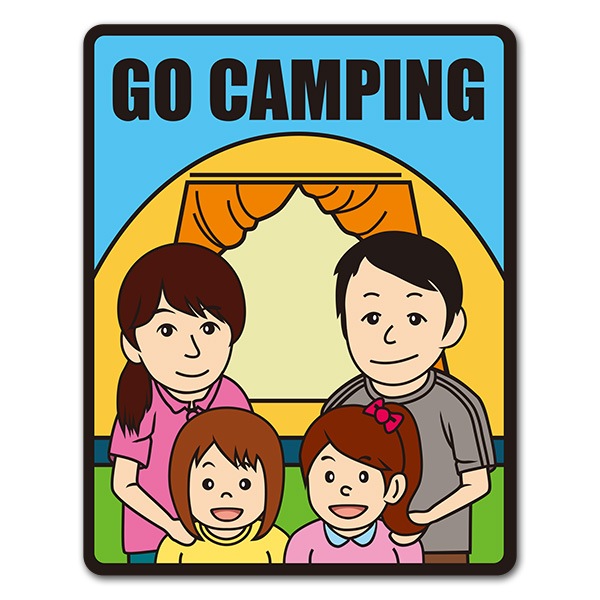 キャンプ 家族パパとママと女の子2人【GO CAMPING】車マグネットステッカー【ゆうパケット配送選択可能】
